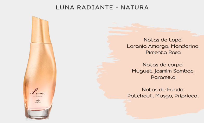 Agora trouxemos um perfume nacional para a nossa lista, o Luna Radiante da Natura. O perfume Luna já teve (e ainda tem!) várias versões desde o seu lançamento e o Luna Radiante é o mais leve de todos. A marca o descreve como um chipre cítrico moderado e realmente a mandarina dele é bem perceptível logo ao borrifar. Passada essa primeira sensação ele se torna um perfume bem levinho e com aquele toque de fundo da priprioca tão característico dos perfumes Natura.